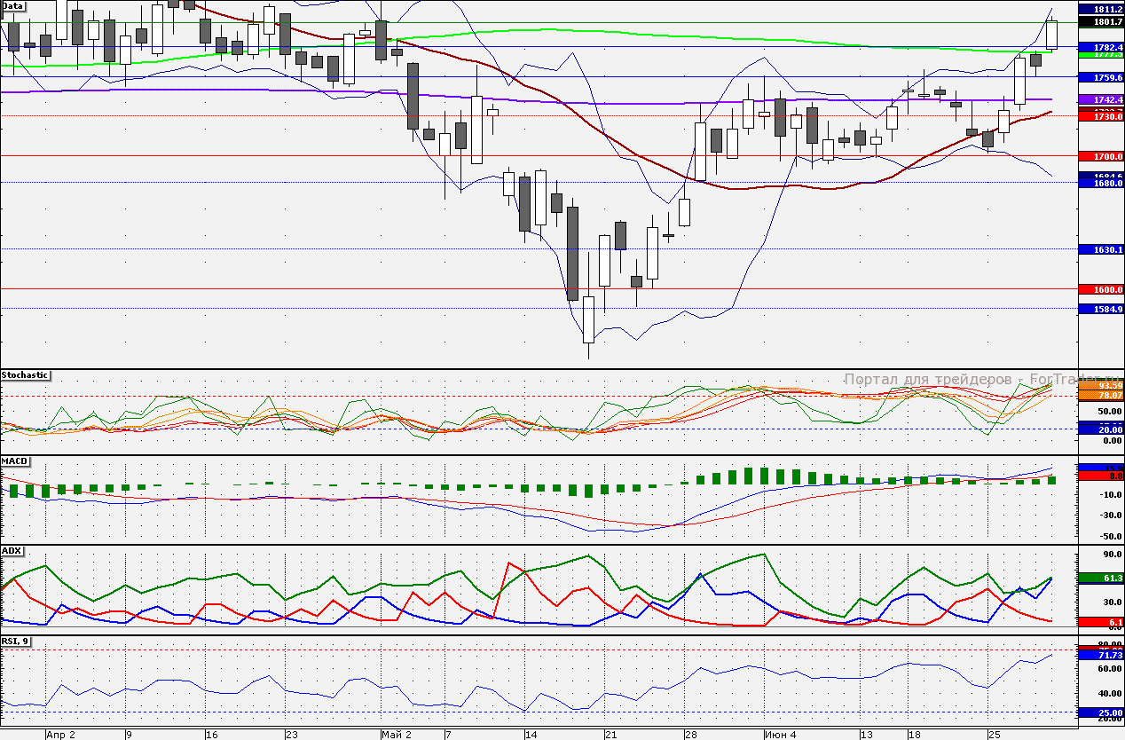 Ближайшие уровни сопротивления: 1835,00/1850,00
