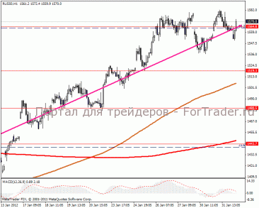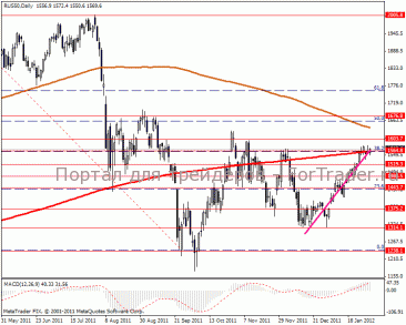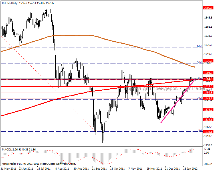Дневной график говорит о взятии следующей цели 1660 пунктов. Среднесрочные перспективы остаются прежние, ожидаем тестирование уровня 1676 пунктов. MACD демонстрирует восходящее направление.