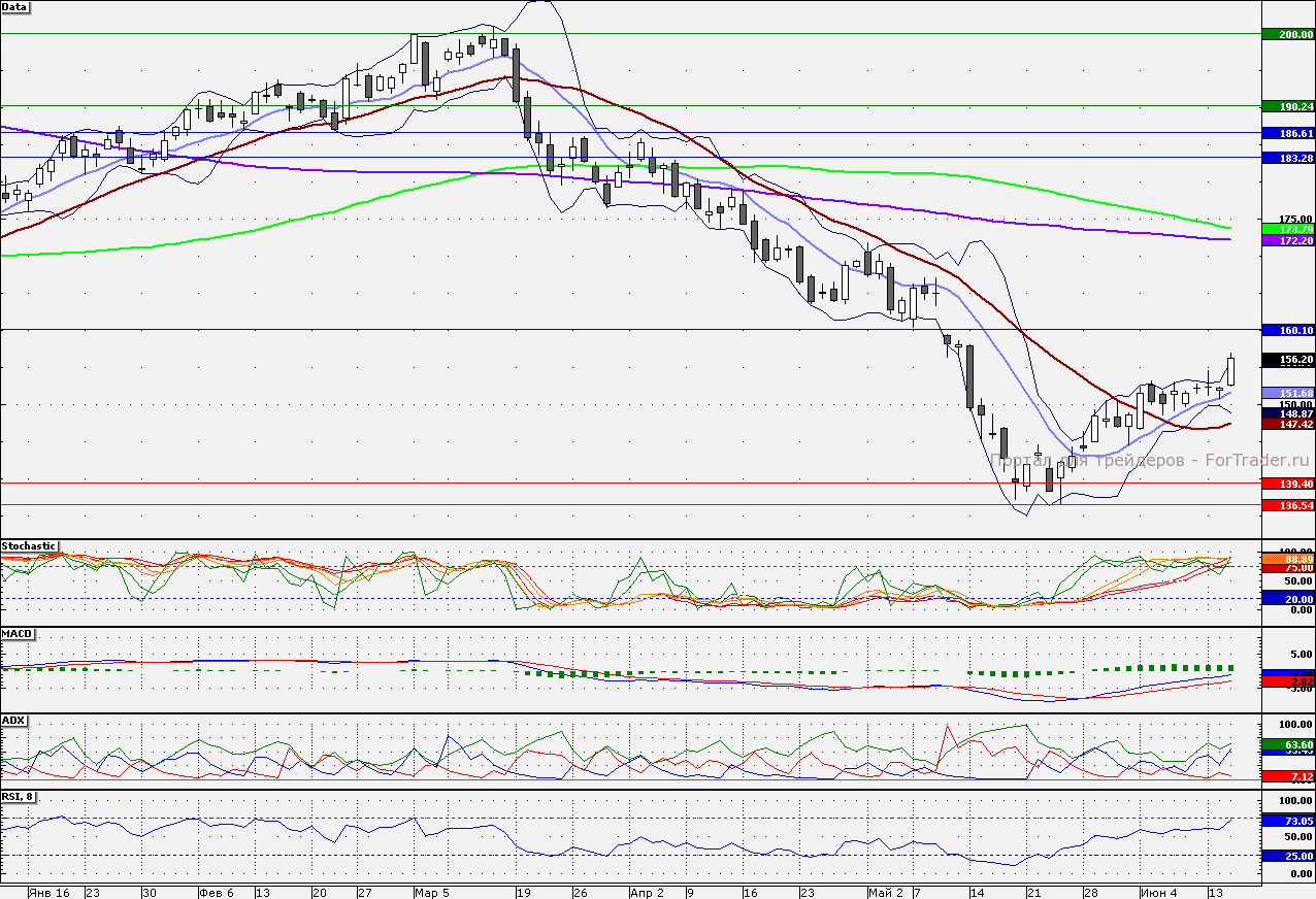 Ближайшие уровни поддержки: 151,68/150,00/147,42/145,00/143,00