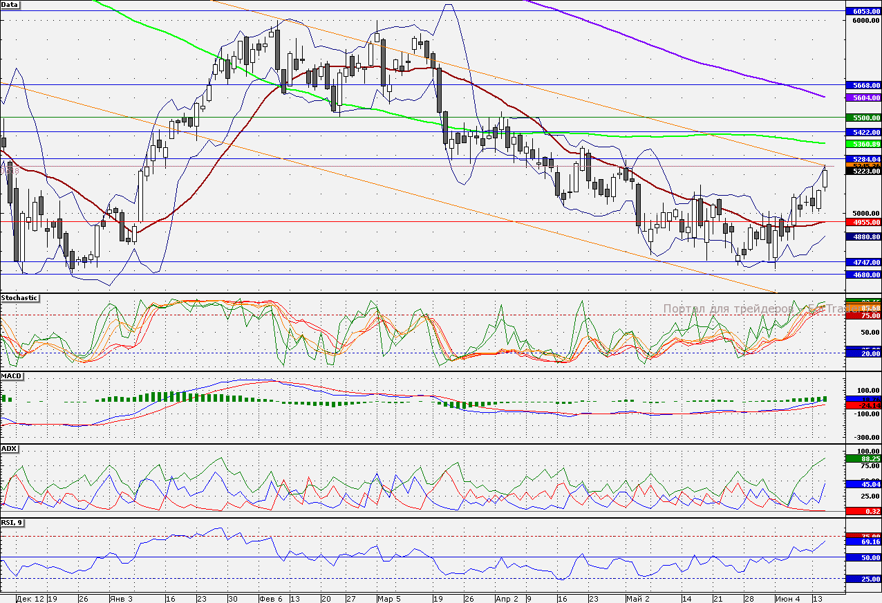 Ближайшие уровни поддержки: 5100,00/5000,00/4955,00