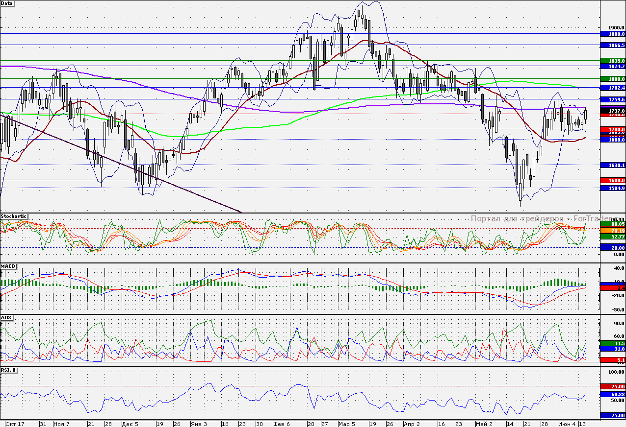 Ближайшие уровни сопротивления: 1741,50/1750,00/1760,00