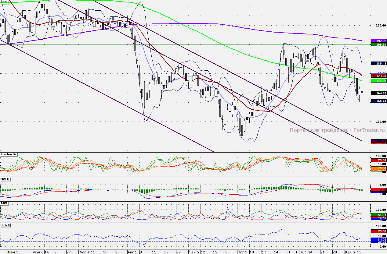 Сопротивлением является 100-дневная скользящая средняя – 171,32 руб., от данной отметки длинные позиции стоит сокращать.