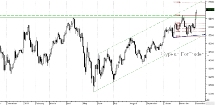 С технической точки зрения ситуация сформировавшаяся к началу предстоящей недели позитивна. Рост, начавшийся на прошлой неделе, имеет своей целью достижение отметки 175 000, откуда возможно начало коррекции, которая может проходить в форме снижения, так и в форме бокового движения. В случае снижения основной поддержкой выступят пробитые уровни бывших максимумов текущего года в районе 166 000.