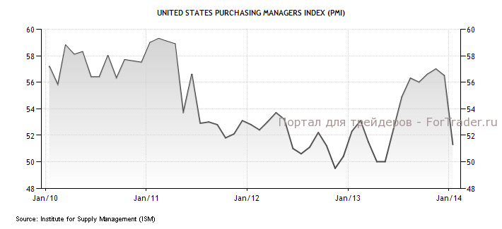 Отчет по производственной активности в США от ISM оказался неожиданно слабым – активность упала до минимума с июня прошлого года. Индекс деловой активности в производственном секторе США от ISM резко упал в январе на 5,2 п. до 51,3 п. с пересмотренных вниз 56,5 п. в декабре, тогда как ожидалось небольшое снижение до 56 п. Месяц назад до полугодового минимума снизился такой же индекс для сферы услуг.
