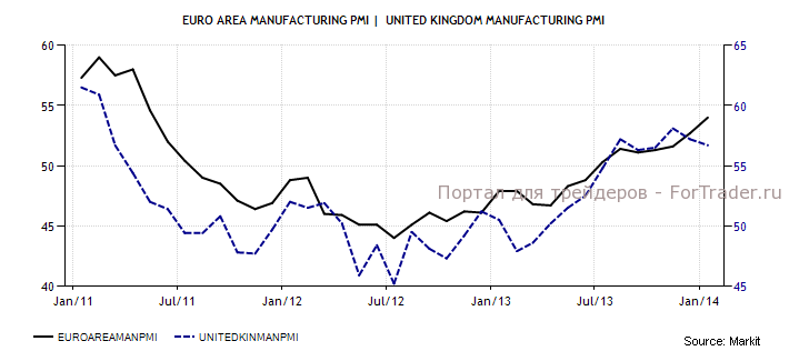 После двух дней снижения евро укрепился на фоне роста производственной активности в еврозоне, которая продолжает оставаться на максимальном уровне с мая 2011 года. Окончательный индекс деловой активности в производственном секторе еврозоны вырос в январе до 54 п. с 52,7 п. в декабре и оказался чуть лучше первоначальных оценок на уровне 53, 9 п. Активность в производственном секторе выросла в январе во всех основных странах, кроме Италии, — в Германии она достигла 32-месячного максимума.