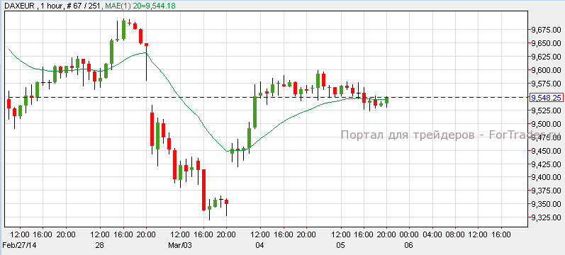 Немецкий индекс DAX 30 резко повысился достигнув уровня сопротивления 9,600. Сегодня ожидается, что решение по процентной ставке вызовет высокую волатильность и рост индекса к отметке 9,670. Прорыв этого уровня приведет к следующей отметке 9,750. Тем не менее, если DAX упадет ниже уровня 9,500, возможно снижение к отметке 9,325.