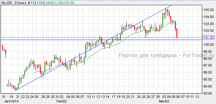 Нефть резко подешевела за последние 2 дня, так как запасы сырой нефти вышли намного лучше чем ожидалось. Нефть составила $101 за баррель, почти коснувшись уровня Фибоначчи на 8-часовом графике. Анализ указывает на снижение к отметке $100 и начало отката с этого пункта. Прорыв уровня $100 приведет нефть к отметке $99 и дальнейшему падению до уровня $94.00.