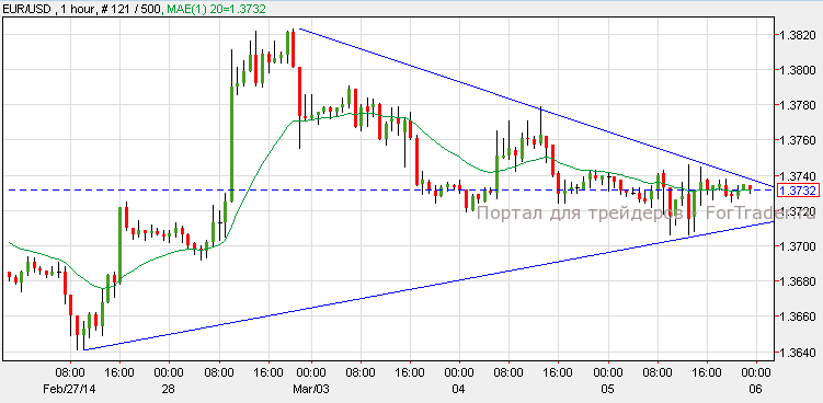 Пара EUR/USD торгуется без изменений, не смотря на то, что объем розничных продаж (Retail Sales) вышел лучше прогнозов. Согласно анализу 1-часового графика, пара сформировала симметричный треугольник, и в ближайшие несколько часов, продолжит движение с восходящим или нисходящим импульсом. Импульс пары зависит от реакции европейского рынка на сегодняшний выход американской статистики и минимальной процентной ставки (Minimum Bid Rate). Прорыв ниже уровня 1.3690 может привести к отметке 1.3640, а прорыв выше уровня 1.3760 приведет к отметке 1.3820.