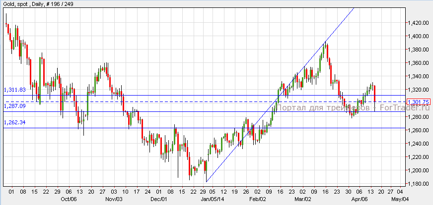 Золото подешевело на 2% после выхода позитивного индекса цен потребителей. По слова главы Федрезерва США Джанет Йеллен, фондовый рынок продолжит расти, что заставит инвесторов продавать золото. Котировки золота упали до уровня поддержки 1287$ откатившись от уровня 1300$. Пока золото торгуется на уровне сопротивления 1305$, оно может во второй раз упасть ниже уровня поддержки.