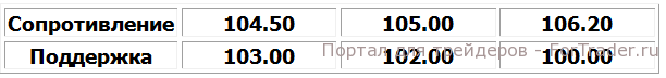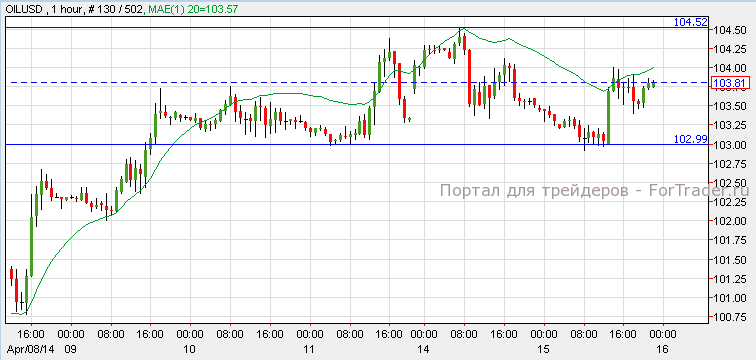На прошлой неделе нефть торговалась между уровнем поддержки 103$ и уровнем сопротивления 104.50$. Согласно прогнозам, запас сырой нефти составит 4 миллиона баррелей. Если запасы выйдут ниже прогнозов, цена может вырасти к уровню 104.40$. Показатель выше 4 миллионов станет причиной снижения цены.