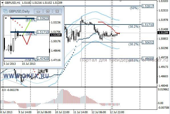 Пара EURUSD немного снизилась в пятницу до предполагаемого входа в buy 1,3000/20, а затем отскочила от данного уровня в район 1,3080. Хорошая возможность заработать. На этой пятидневке будут опубликованы данные по инфляции в Еврозоне и индекс ZEW во вторник. Это важнейшие события для евро. Прошедшая неделя отработала по зеленому сценарию. На эту неделю традиционно рассматриваю два варианта возможного движения цены, основной красный и альтернативный зеленый. Значимые уровни на сегодня отмечены на часовом графике. Индикатор АО находится у нуля, указывая на неопределенность. Индикатор тренда указывает на снижение. Сегодня наблюдаем за предпочтениями рынка.
