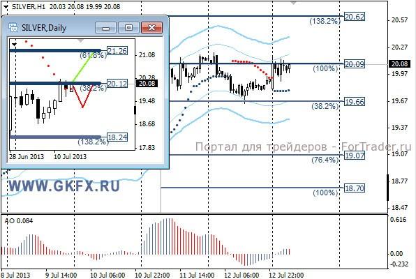 Цены на серебро не смогли преодолеть отметку 20,20, поэтому план с покупками не исполнился. Прошедшая неделя отработала частично по зеленому сценарию. Традиционно делаю два варианта движения цены на неделю, основной красный и альтернативный зеленый. Значимые уровни на сегодня отмечены на часовом графике. Индикатор АО находится в положительной зоне и снижается, указывая на коррекцию перед возможным продолжением роста. Индикатор тренда указывает на рост. Сегодня наблюдаем за предпочтениями рынка.