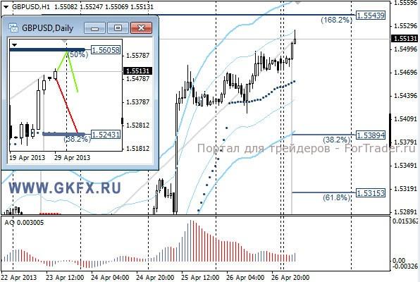 Пара GBPUSD в пятницу отработала первую цель для восходящего движения и сегодня утром продолжила движение ко второй, которая находится на 1,5540. Сегодня можно ожидать рост к этому уровню. Безопасной точки для входа нет, поэтому рекомендаций не даю. Прошедшая неделя прошла по зеленому сценарию. На этой неделе по традиции рассматриваю два варианта возможного движения цены, основной красный и альтернативный зеленый. Значимые уровни на сегодня отмечены на часовом графике. Индикатор АО находится в положительной зоне и растет, указывая на желание пары двигаться вверх. Индикатор тренда указывает на рост. Сегодня наблюдаем за поведением рынка.