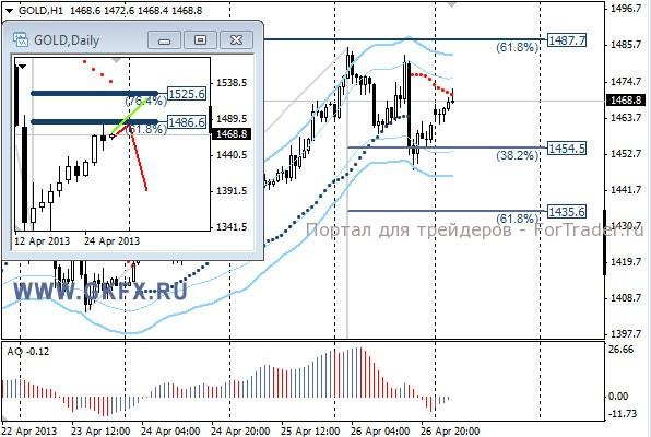 Цены на золото приостановили рост на 1485,0, но вероятность его продолжения еще велика. Коррекция еще может продолжиться ниже, а затем возобновится рост. Цель снижения район 1435,0. В этом месте и попытаемся поймать цену. Рекомендаций сегодня не даю, так как безопасного места для входа нет. Прошедшая неделя отработала  по зеленому сценарию. Традиционно делаю два варианта движения цены на неделю, основной красный и альтернативный зеленый. Значимые уровни на сегодня отмечены на часовом графике. Индикатор АО находится у нуля, указывая на неопределенность. Индикатор тренда указывает на снижение. Сегодня наблюдаем за поведением рынка.