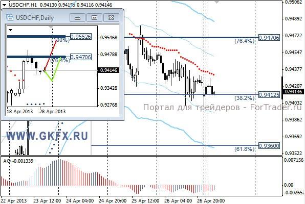 Пара USDCHF опять ведет себя очень скромно и ожидаемого снижения не произошло. Возможно сегодня пара его доделает в район 0,9380. Рекомендаций не даю, так как безопасного места для входа нет. На этой неделе по традиции рассматриваю два варианта возможного движения цены, основной красный и альтернативный зеленый. Значимые уровни на сегодня отмечены на часовом графике. Индикатор АО находится в отрицательной зоне и снижается, указывая на желание пары снижаться в данное время. Индикатор тренда указывает на снижение. Сегодня наблюдаем за поведением рынка.