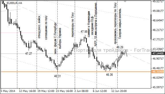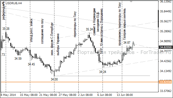 Боевые действия на юго-востоке Украины не прекращаются, журналистов убивают. На газопроводе «Уренгой-Помары-Ужгород» произошёл взрыв, который может вызвать перебои в поставках газа в Европу. На украинской границе концентрируются войска РФ. Один негатив, и никаких позитивных новостей с Украины. При таком новостном фоне у рубля нет никаких шансов на укрепление против доллара и евро.