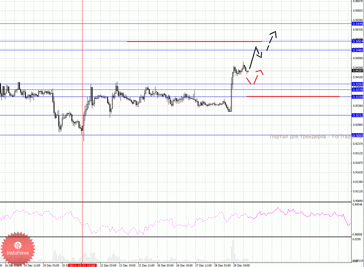 По паре Доллар/Франк ключевым уровня являются: 0.9549, 0.9504, 0.9480, 0.9393, 0.9378, 0.9359, 0.9312 и 0.9260. Здесь потенциальной целью для верха, на текущий момент, является уровень 0.9480, по достижении которого, ожидаем консолидированное движение в коридоре 0.9480 – 0.9504. Потенциальным значением для верха пока считаем уровень 0.9549, движение к которому ожидаем после пробоя 0.9504. Корректировочное нисходящее движение возможно в диапазоне 0.9393 – 0.9378, пробой последнего значения приведет к углубленному коррекции, здесь цель 0.9360, от этого уровня существует вероятность разворота кверху, его пробой будет располагать к развитию нисходящей структуры, в данном случае потенциальная цель – 0.9312.