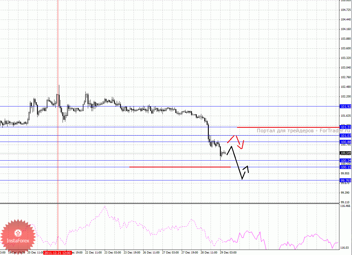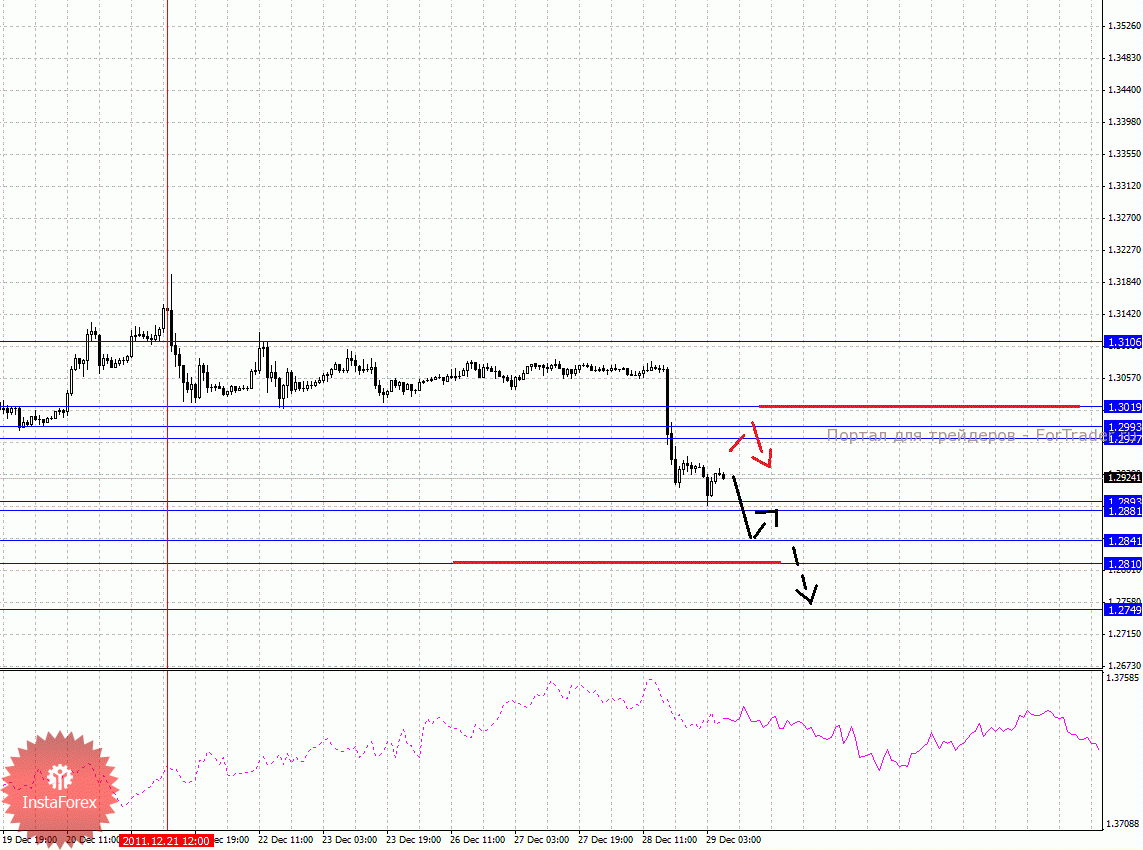 По паре Евро/Доллар важными уровнями являются: 1.3106, 1.3019, 1.2993, 1.2977, 1.2893, 1.2881, 1.2841, 1.2810 и 1.2749. Здесь продолжения нисходящей структуры от 21 декабря ожидаем после пробоя 1.2881, в данном случае цель 1.2841, в коридоре 1.2841 – 1.2810 консолидация цены. Потенциальным значением для низа считаем уровень 1.2749, по достижении которого, ожидаем откат кверху. Корректировочное восходящее движение возможно в коридоре 1.2977 – 1.2993, пробой последнего значения приведет к углубленной коррекции, здесь цель 1.3019, от этого уровня существует вероятность разворота книзу. Пробой 1.3019 будет располагать к развитию восходящей структуры и в данном случае потенциальная цель 1.3106. Также уважаемые трейдеры, обратите внимание на развитие ситуации по главному индексу Доу Джонс, где существует потенциал для развития верха.
