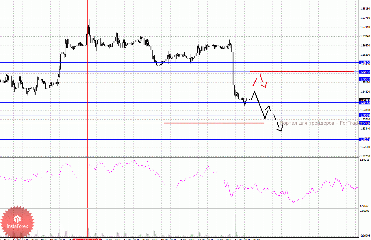 По паре Фунт/Доллар ключевыми уровнями являются: 1.5600, 1.5563, 1.5533, 1.5438, 1.5388, 1.5357 и 1.5291. Здесь мы следим за нисходящей структурой от 21 декабря. Продолжения движения книзу ожидаем после пробоя 1.5435, в данном случае цель 1.5388, в коридоре 1.5388 – 1.5357 консолидация цены. Потенциальным значением для низа считаем уровень 1.5291, по достижении которого ожидаем откат кверху. Корректировочное восходящее движение возможно в коридоре 1.5533 – 1.5563, пробой последнего значения приведет к углубленной коррекции, здесь цель 1.5600, по достижении этого уровня ожидаем консолидацию.