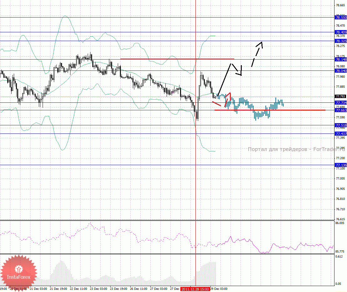 По паре Доллар/Йена ключевыми уровнями являются: 78.55, 78.40, 78.32, 78.14, 78.04, 77.73, 77.66, 77.51, 77.43 и 77.13. Здесь восходящую структуру от 28 декабря рассматриваем в качестве локальной. Краткосрочное восходящее движение ожидаем в диапазоне 78.04 – 78.14, пробой последнего значения приведет к развитию импульса, в данном случае цель – 78.32. В коридоре 78.32 – 78.40 консолидация цены. Потенциальным значением для верха считаем уровень 78.55, движение к которому ожидаем после пробоя 78.40. Корректировочное нисходящее движение возможно в коридоре 77.73 – 77.66, пробой последнего значения приведет к отмене восходящей структуры от 28 декабря, в данном случае первая цель 77.51.