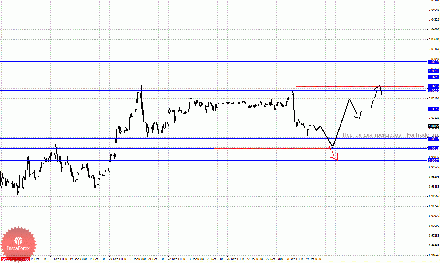 По паре Австралийский доллар/Доллар ключевыми уровнями являются: 1.0297, 1.0265, 1.0246, 1.0217, 1.0202, 1.0142, 1.0045, 1.0013 и 0.9974. Здесь основные цели остались практически без изменения, и мы продолжаем рассматривать восходящую структуру в качестве среднесрочных начальных условий. Краткосрочное нисходящее движение возможно в диапазоне 1.0045 – 1.0013, отсюда высока вероятность разворота кверху, с последующим развитием тенденции. Пробой уровня 1.0013 окажет негативное влияние на развитие восходящей структуры, и в данном случае потенциальная цель 0.9974, возле этого уровня консолидация. Уровень 1.0142 является ключевым сопротивлением для верха, его пробой позволит рассчитывать на продолжение развитие восходящей структуры от 15 декабря, в данном случае первая цель 1.0202, далее без изменений.