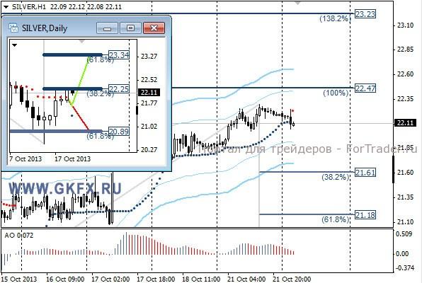 Цены на серебро, как писал ранее, могут продолжить рост на этой неделе, но он будет ограничен, так как основной тренд нисходящий. Если данные по рынку труда окажутся сильными, то можно ожидать значительного снижения, так как оно будет проходить по основному тренду. Традиционно делаю два варианта движения цены на неделю, основной красный и альтернативный зеленый. Значимые уровни на сегодня отмечены на часовом графике. Индикатор АО находится у нуля, указывая на неопределенность. Индикатор тренда указывает на снижение. Вне рынка.