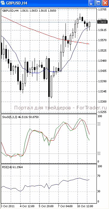 Цены движутся к уровню сопротивления 1.5660. Если он будет преодолен, продолжится подъем, первичной целью которого, скорее всего, станет отметка 1.57. В пользу такого исхода позволяет говорить то, что на 4-х часовом графике (рис.1) «быстрая» скользящая средняя достаточно уверенно направлена вверх. В бычьем направлении наметили разворот и осцилляторы. Но все же полностью исключать возможность возобновления нисходящего движения не стоит, поскольку МА (100) все еще направлена вниз.