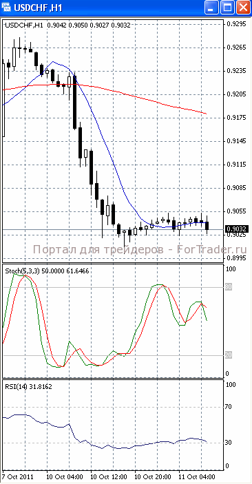 На часовом графике (рис.2) «медленная» скользящая средняя направлена вниз. В медвежьем направлении устремлены и оба осциллятора. Все это подтверждает предположение о возможности развития нисходящего движения с последующим тестированием уровня поддержки 0.90.