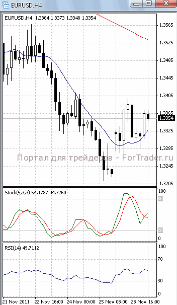Развить восходящее движение ценам не удалось и они вновь возвращаются к уровню поддержки 1.3340. Если он будет преодолен, стоит ждать дальнейшего падения, первичной целью которого, скорее всего, станет отметка 1.33 и, далее, 1.3260/50. В пользу такого исхода позволяет говорить то, что на 4-х часовом графике (рис.1) МА (100) все еще уверенно устремлена вниз. В медвежьем направлении развернулся и осциллятор RSI. Но МА (10) приобрела восходящую направленность. Поэтому не стоит полностью исключать возможность повторного тестирования отметки 1.3370.