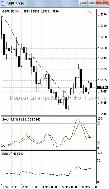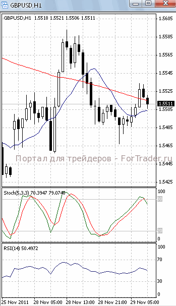 На часовом графике (рис.2) МА (100), SS и RSI направлены вниз, тем самым, подтверждая предположение о возможности прорыва уровня поддержки 1.55 и дальнейшего падения. В ту же сторону готовится развернуться и МА (10).