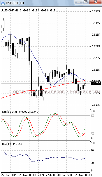 Цены консолидируются в районе уровня поддержки 0.92. Если он будет пройден, продолжится падение, первичной целью которого, скорее всего, станет отметка 0.9150. Вероятность такого исхода позволяет предположить то, что на 4-х часовом графике (рис.1) МА (10) направлена вниз. В то же время МА (100) и оба осциллятора направлены вверх. Поэтому вполне возможно, что цены возобновят подъем к отметке 0.93.