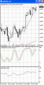 Цены тестируют уровень сопротивления 1.60. Если он будет пройден, продолжится подъем, первичной целью которого, скорее всего, станет отметка 1.6030 и, далее, 1.6070. В пользу развития восходящего движения позволяет говорить то, что на 4-х часовом графике (рис.1) обе скользящие средние уверенно устремлены вверх. В бычьем направлении разворачиваются и осцилляторы. При этом не стоит исключать из поля зрения то, что SS в зоне перекупленности и, следовательно, вероятность отката к 1.5960.