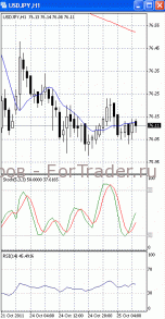 На часовом графике (рис.2) «быстрая» скользящая средняя, SS и RSI приобрели восходящую направленность. Все это подтверждает предположение о возможности прорыва указанного уровня сопротивления и продолжения роста цен.
