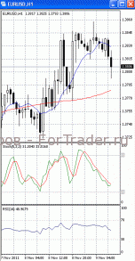 На часовом графике (рис.2) обе скользящие средние направлены вниз, тем самым, сигнализируя в пользу прорыва указанного уровня поддержки и дальнейшего падения. В медвежьем направлении развернулся и RSI.
