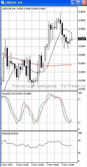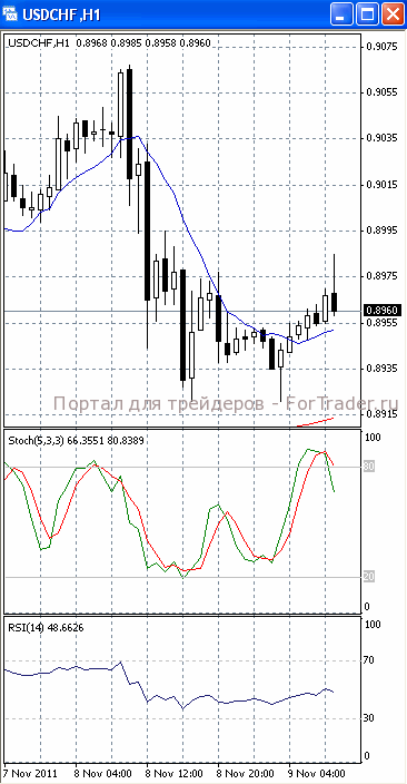 На часовом графике (рис.2) и «быстрая», и «меленная» скользящие средние устремлены вверх, тем самым, подтверждая предположение о развитии восходящего движения. SS и RSI развернулись вниз, сигнализируя в пользу возвратного хода к отметке 0.8930.