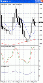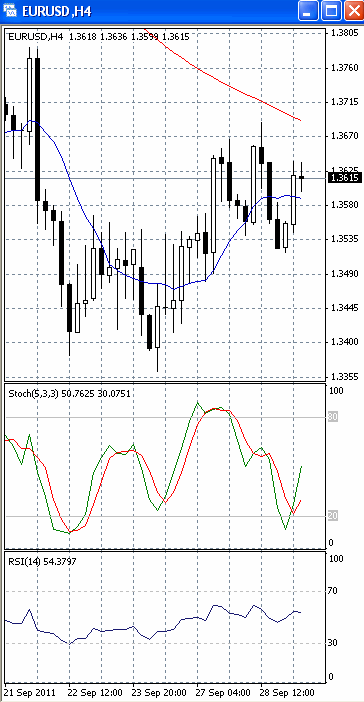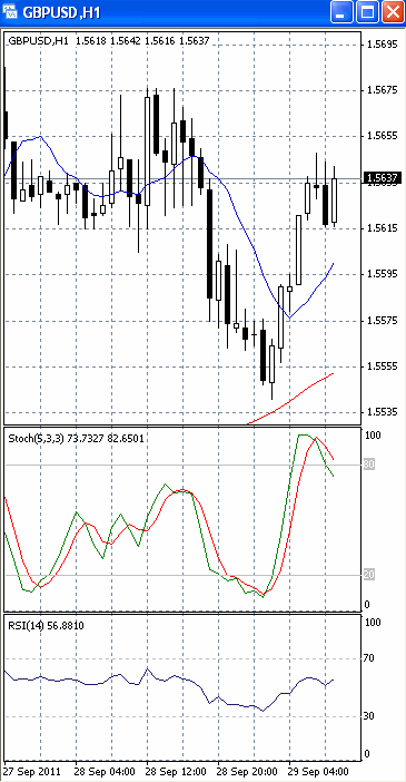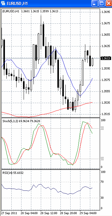 На часовом графике (рис.2) обе скользящие средние направлены вверх. В бычьем направлении наметил разворот и осциллятор RSI. Все это подтверждает предположение о возможности прорыва указанного уровня сопротивления и дальнейшего роста. SS вышел из зоны перекупленности, сигнализируя в пользу возвратного хода к отметке 1.36.