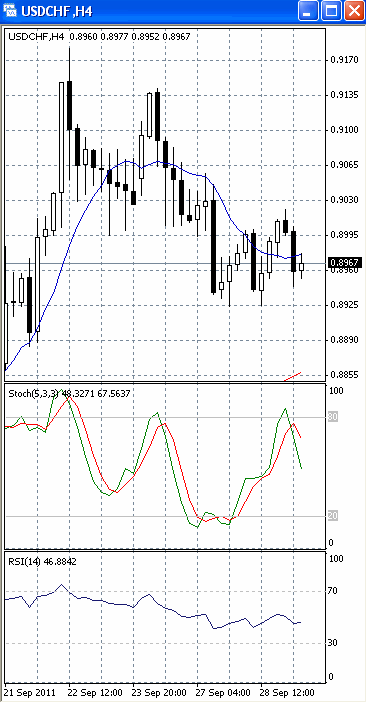 Пара снова движется к уровню поддержки 0.8950. Если он будет преодолен, продолжится падение, первичной целью которого, скорее всего, станет отметка 0.89. Однако то, что МА (10) и МА (100) на 4-х часовом графике (рис.1) приобретают восходящую направленность, свидетельствует в пользу возобновления роста с повторным тестированием отметки 0.90. Вверх наметил разворот и осциллятор RSI.
