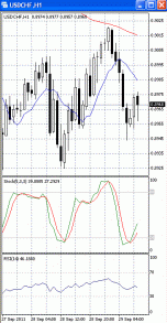 На часовом графике (рис.2) обе скользящие средние достаточно уверенно направлены вниз, тем самым, подтверждая предположение о возможности прорыва указанного уровня поддержки и продолжения нисходящей фазы движения. SS и RSI, как и на 4Н, разнонаправлены.
