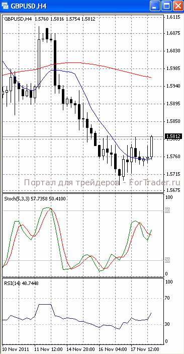 На часовом графике (рис.2) «быстрая» скользящая средняя приобрела восходящую направленность, тем самым, подтверждая предположение о возможности прорыва уровня 1.35. Вверх развернулись и SS, и RSI. МА (100) уверенно устремлена вниз, сигнализируя в пользу возобновления нисходящего движения.