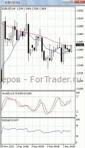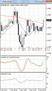 На часовом графике (рис.2) «быстрая» скользящая средняя разворачивается вниз, тем самым, подтверждая предположение о возможности прорыва указанного уровня поддержки и дальнейшего падения. В медвежьем направлении устремлены и SS, и RSI.