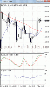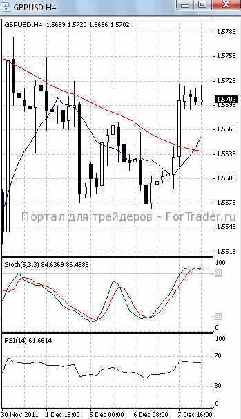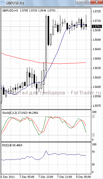 Цены консолидируются в районе уровня поддержки 1.57. Если он будет пройден, стоит ждать дальнейшего падения, первичной целью которого, скорее всего, станет отметка 1.5660. В пользу такого исхода позволяет говорить то, что на 4-х часовом графике (рис.1) МА (100) направлена вниз. В ту же сторону развернулись и оба осциллятора (SS в зоне перекупленности). Но МА (10) устремлена вверх. Поэтому вполне возможно, что цены начнут подъем к отметке 1.5725.