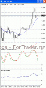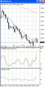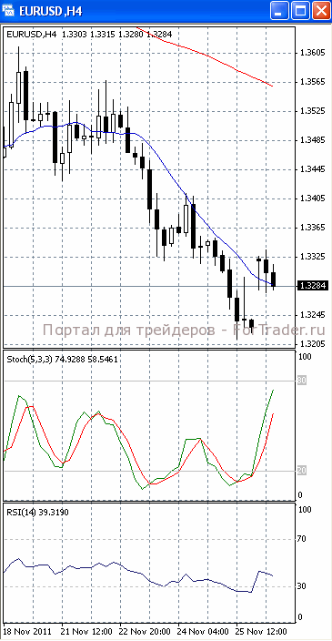 Цены снова зафиксировались ниже поддержки 1.33. Это позволяет ждать продолжения нисходящей фазы движения к пятничным минимумам. О возможности такого исхода позволяет говорить и то, что на 4-х часовом графике (рис.1) обе скользящие средние уверенно устремлены вниз. В медвежьем направлении развернулся и осциллятор RSI.