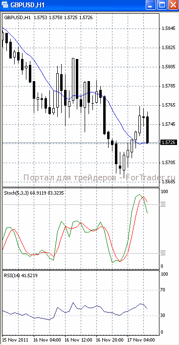 На часовом графике (рис.2) «быстрая» скользящая средняя приобретает нисходящую направленность, тем самым, подтверждая предположение о возможности прорыва указанного уровня поддержки и дальнейшего падения. В медвежьем направлении устремлены и SS, и RSI.
