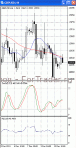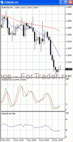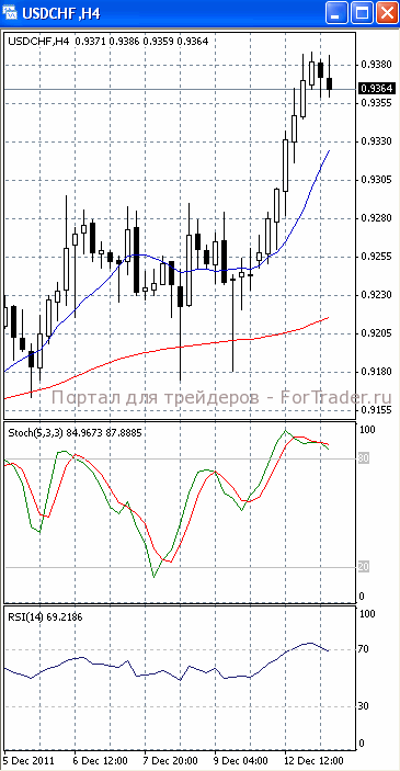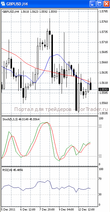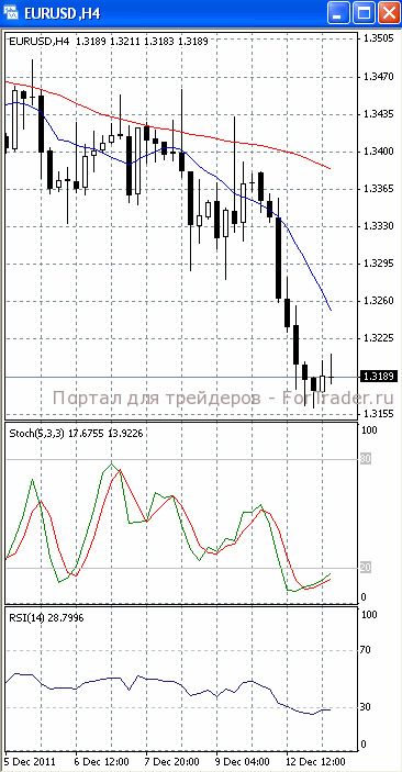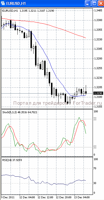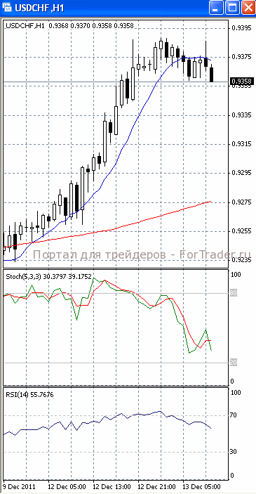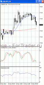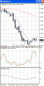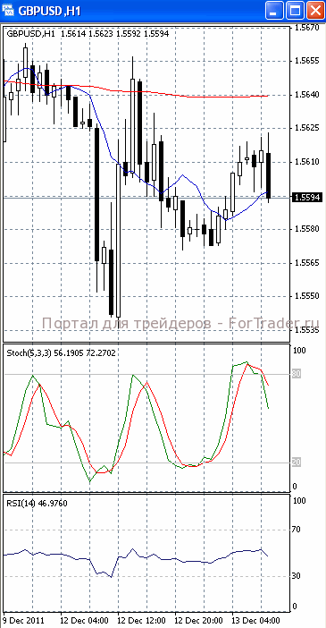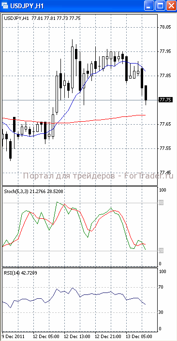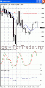 На часовом графике (рис.2) «быстрая» скользящая средняя приобрела восходящую направленность, тем самым, сигнализируя в пользу возможного повторного тестирования указанного уровня сопротивления. SS и RSI, как и на 4Н, приобрели нисходящую направленность.