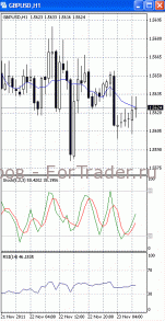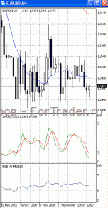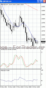 В рамках отката цены пытаются зафиксироваться выше отметки 1.5620. Если она будет пройдена, стоит ждать дальнейшего роста к сопротивлению 1.5660. О начале коррекции своим разворотом сигнализировали осцилляторы на 4-х часовом графике (рис.1). В то же время МА (10) и МА (100) уверенно устремлены вниз. Поэтому вполне возможно, что после отката цены возобновят нисходящее движение и еще раз попытаются преодолеть поддержку 1.56.
