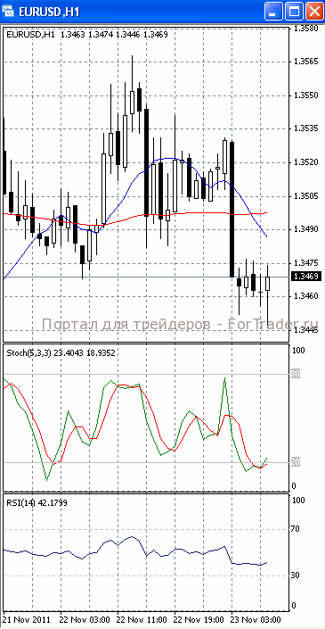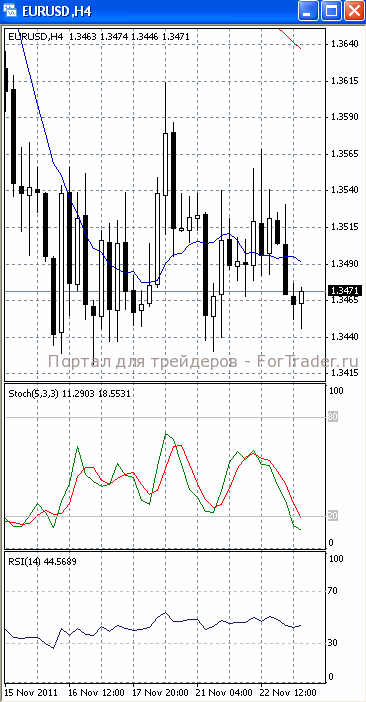 На часовом графике (рис.2) «быстрая» скользящая средняя также направлена вниз, тем самым, подтверждая предположение о возможности возобновления падения цен. Вниз развернулся и RSI. SS устремлен вверх, сигнализируя в пользу отката.