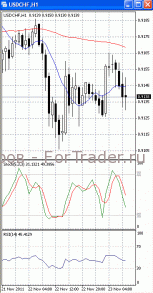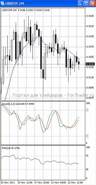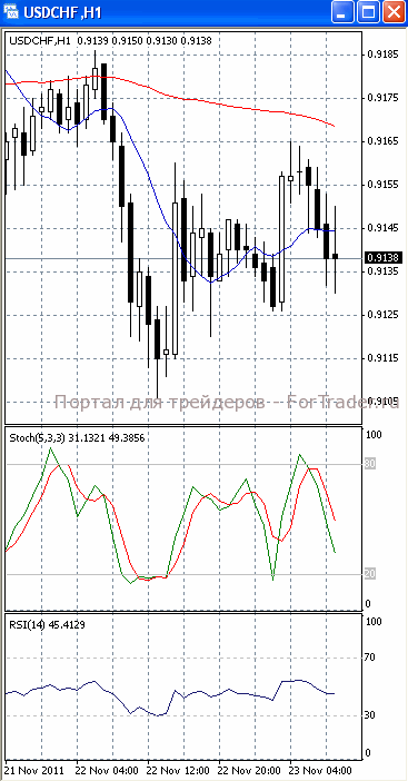 На часовом графике (рис.2) и «быстрая», и «медленная» скользящие средние направлены вниз, тем самым, подтверждая предположение о вероятности прорыва указанного уровня поддержки и дальнейшего падения. В медвежьем направлении устремлен SS. RSI, напротив, наметил разворот вверх, сигнализируя в пользу возврата цен к отметке 0.9150.