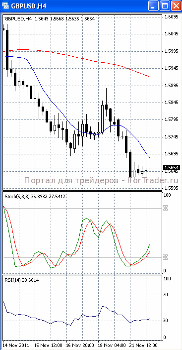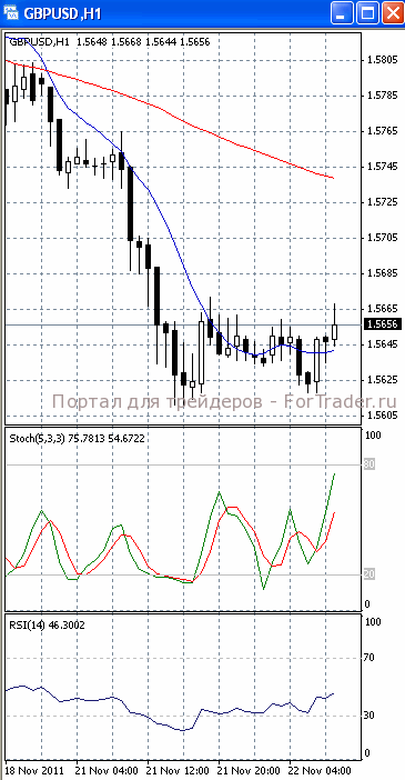 Цены тестируют верхнюю границу диапазона 1.5620 – 1.5660. Если она будет преодолена, продолжится подъем, первичной  целью которого, скорее всего, станет отметка 1.57. О начале фазы роста своим разворотом сигнализировали осцилляторы на 4-х часовом графике (рис.1). В то же время МА (10) и МА (100) уверенно устремлены вниз. Поэтому вполне возможно, что после завершения консолидации цены возобновят нисходящее движение к уровню поддержки 1.5550.