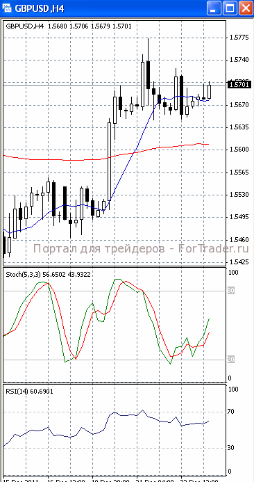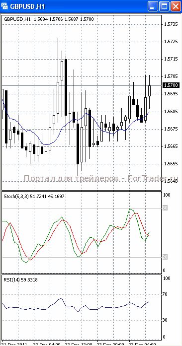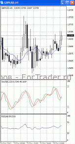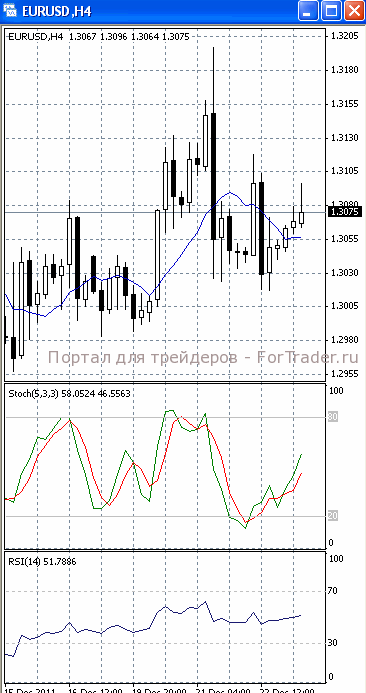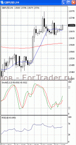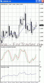На часовом графике (рис.2) и «быстрая», и «медленная» скользящие средние приобрели восходящую направленность, тем самым, подтверждая предположение о вероятности прорыва указанного уровня сопротивления и продолжения роста цен. SS (вышел из зоны перекупленности) устремлен вниз. В ту же сторону развернулся и RSI, сигнализируя о возможности отката.