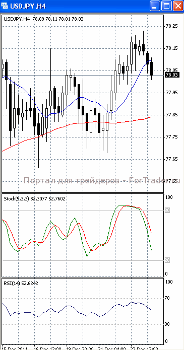 На часовом графике (рис.2) обе скользящие средние также приобрели восходящую направленность, тем самым, подтверждая предположение о возможности возобновления восходящего дивжения. SS и RSI разворачиваются в медвежьем направлении, тем самым, сигнализируя о возможности отката к поддержке 77.60.